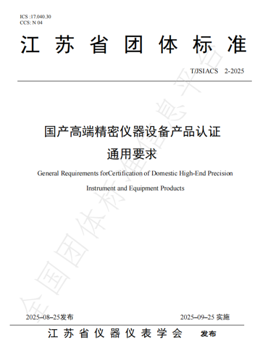 近日,江蘇省儀器儀表學(xué)會正式批準(zhǔn)發(fā)布團體標(biāo)準(zhǔn)《國產(chǎn)高端精密儀器設(shè)備產(chǎn)品認證通用要求》(標(biāo)準(zhǔn)編號:T/JSIACS 2 - 2025)。該標(biāo)準(zhǔn)嚴(yán)格依據(jù)《江蘇省儀器儀表學(xué)會標(biāo)準(zhǔn)管理辦法(試行)》制定,圍繞國產(chǎn)高端精密儀器設(shè)備產(chǎn)品認證,在基本要求、國產(chǎn)化要求、品質(zhì)屬性等關(guān)鍵維度作出明確規(guī)范,適用于國產(chǎn)高端精密儀器設(shè)備產(chǎn)品的通用認證場景。