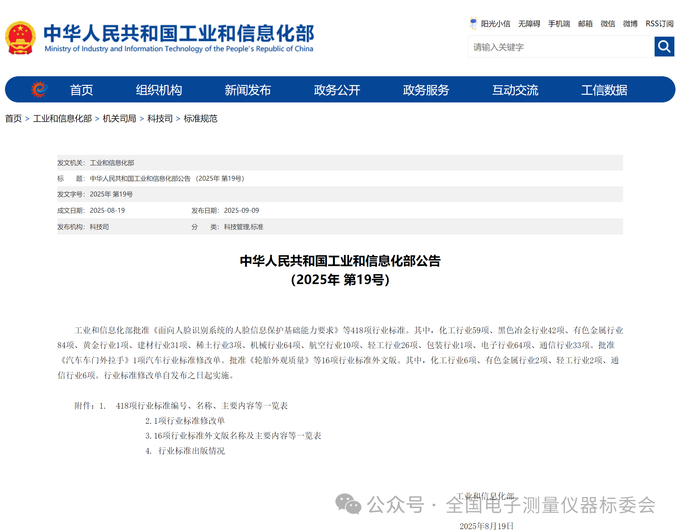根據(jù)中華人民共和國工業(yè)和信息化部公告(2025年 第19號),由全國電子測量儀器標(biāo)準(zhǔn)化技術(shù)委員會歸口的《鋰電池芯短路測試儀》(標(biāo)準(zhǔn)號:SJ/T 10230-2025)《電子紅外額溫計通用規(guī)范》(標(biāo)準(zhǔn)號:SJ/T 10231-2025)等2項電子行業(yè)標(biāo)準(zhǔn)正式發(fā)布。
